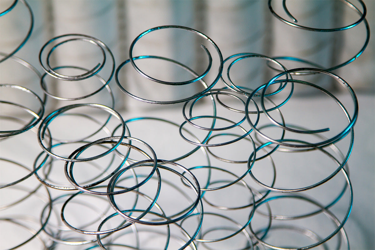 meðvitað að finna vottaða birgja þar sem það er mögulegt. Þótt þeir séu ekki vottaðir eru pokagormarnir okkar framleiddir með að minnsta kosti 25% endurunnið stálinnihald, en sumir þeirra innihalda allt að 93% endurunnið stál úr stálbroti. Við viðurkennum að málmur hefur tiltölulega hærra kolefnisfótspor vegna orkufreks framleiðsluferlis hans. Þess vegna erum við að vinna með birgjum okkar að því að auka magn endurunnins stál í pokagorma dýnunum okkar.