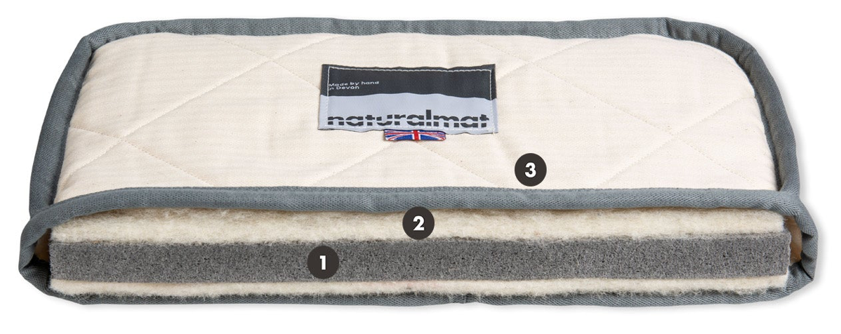 Við hjá Naturalmat trúum því að fólk, en ekki vélar, geri betri og endingargóða vöru. Lið okkar af handverksfólki tryggir að sérhver saumur, sérhvert efni, hvern einasti hnappur og allar dýnur séu vandlega búnar til, yfirfarnar og athugaðar. Þess vegna stimplum við með stolti „Made by hand in Devon“ á allar dýnurnar okkar.
